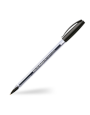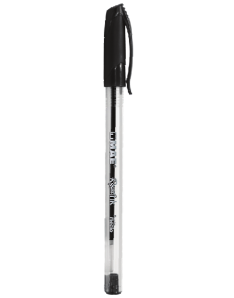 Es un bolígrafo de tinta seca de color negro, azul o rojo, de la marca Faber Castell, líder en el mercado de escritura. Tiene una punta mediana de 1,0 mm con punta de tungsteno, que garantiza una escritura suave y fluida. Tiene un cuerpo transparente de forma triangular, que facilita el agarre y la visibilidad de la tinta. Tiene una tapa antiasfixiante con clip.