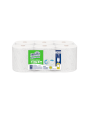 Toalla blanca de rollo continuo y pre-cortado por 100 m. De tres hojas, con embossing o grabado que entrega mayor absorción y suavidad. Recomendada para el secado de manos y limpieza de pequeñas superficies.