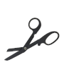 Tijera de trauma metálica, un instrumento médico de alta calidad y resistencia, diseñado para cortar ropa, vendajes o cualquier material que impida la atención de una herida o lesión. Su forma ergonómica y su filo afilado facilitan su uso y manejo.