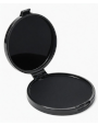 Es una almohadilla de tinta para marcar las huellas dactilares. Está hecha de espuma y plástico. Tiene una forma redonda y un diámetro de 6 cm. Tiene un color negro intenso y una textura suave.