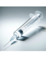 Jeringa desechable de 5 ml, estéril, para uso médico y aplicaciones de medicamentos. La jeringa desechable es un instrumento que se usa para inyectar o extraer líquidos del cuerpo. Tiene un cilindro graduado de 5 ml, un émbolo y una aguja. Es de un solo uso y se debe desechar después de su uso.