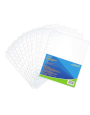 Consiste en un paquete de 100 protectores de hojas de tamaño carta, fabricados en polipropileno. Son transparentes, antiestáticos y con borde reforzado. Tienen múltiples perforaciones para adaptarse a diferentes tipos de carpetas.
