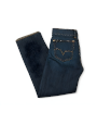 Es una prenda de vestir de tipo pantalón, confeccionada en tela de jean de color azul y de 14 onzas de peso. Tiene cinco bolsillos, cierre de botón y cremallera, y presillas para el cinturón. Tiene un bordado en la parte trasera con el logo de la empresa.