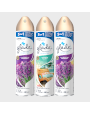 Este producto es un ambientador en aerosol que contiene aceites esenciales y fragancias variadas. Algunos de los aromas disponibles son: frescura matinal, alegría floral y frutos rojos, fresh lemon, mora radiante, campos de lavanda, entre otros. Tiene un contenido de 400 ml.