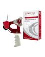 Este dispensador es de tipo pistola con un mango ergonómico. Está fabricado en acero y polipropileno de alto impacto. Tiene un sistema “roll-on” que facilita el sellado centrado de las cajas. Es compatible con cintas de 48 mm de ancho y 77 mm de diámetro interno.