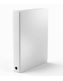 Es una pasta de argolla de color blanco, con tres anillos metálicos redondos de 1 pulgada de diámetro. Está elaborada en plástico de alta calidad, con bolsillo interior y exterior transparentes. Tiene un tamaño de 26 cm x 30 cm y una capacidad de 200 hojas.