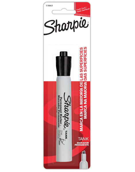Marcador permanente Sharpie Tank punta cincel es el marcador que te permite escribir sobre cualquier superficie con una fluidez y una durabilidad excepcionales. Su tinta se seca rápidamente y es resistente al agua y a la decoloración. Su punta cincel te permite crear trazos anchos y variados sobre papel, plástico, metal, madera, vidrio y más. Su diseño de tanque te ofrece un mayor rendimiento y una mayor duración. Es el marcador más potente de la marca Sharpie, líder en el mercado.