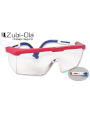 Gafas de seguridad con montura universal y lente en policarbonato. Sin antifog. Brazos extensibles y graduable. Con protección lateral. Filtran el 99.9% de los rayos ultravioletas. Aprobación ANSI-Z87+. Peso: 40 gr.