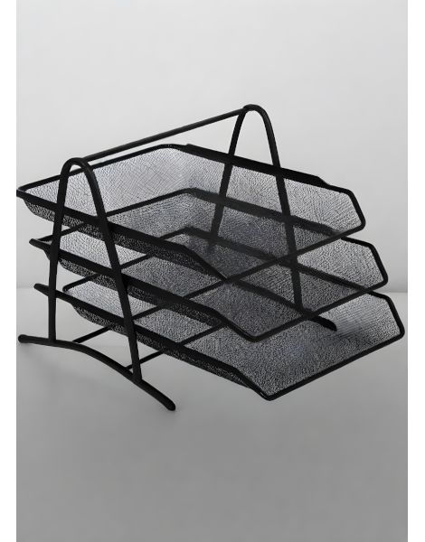 BANDEJA PARA ESCRITORIO EN MALLA METALICA TRIPLE NEGRA IMPORTADA